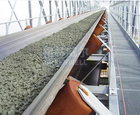 皮帶輸送機主要由機架、輸送帶、托輥、滾筒、張緊裝置、傳動裝置等組成。皮帶輸送帶轉(zhuǎn)動的滾筒稱為驅(qū)動滾筒,另一個僅在于改變輸送帶運動方向的滾筒稱為改向滾筒。驅(qū)動滾筒由電動機通過減速器驅(qū)動,輸送帶依靠驅(qū)動滾筒與輸送帶之間的摩擦力拖動。驅(qū)動滾筒一般都裝在卸料端,以增加牽引力,有利于拖動。物料由喂料端喂入,落在轉(zhuǎn)動的輸送帶上,依靠輸送帶摩擦帶動運送到卸料端卸出。